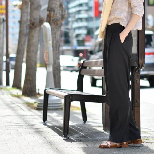 トップスはシンプルにTシャツを合わせるだけでも雰囲気があって素敵な1着です。