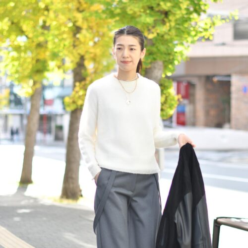 インナーには、SCAGLIONEのアルパカニットを合わせました。