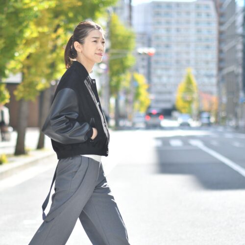 全体的に格好良いコーディネートに、このニットの暖かみと可愛らしさをプラスして、完成です!