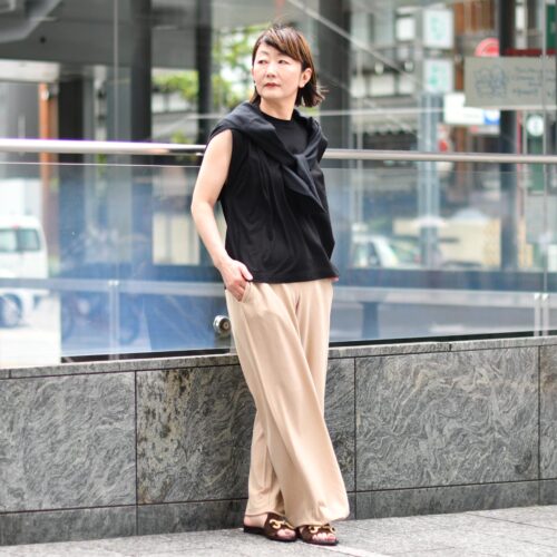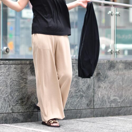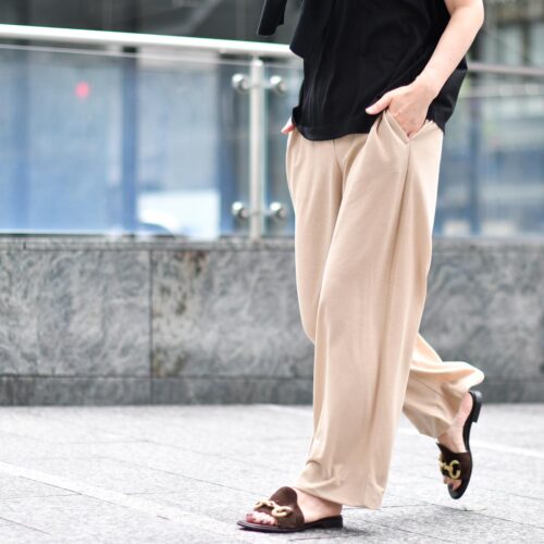 柔らかな生地のワイドシルエットですので、落ち感も美しく