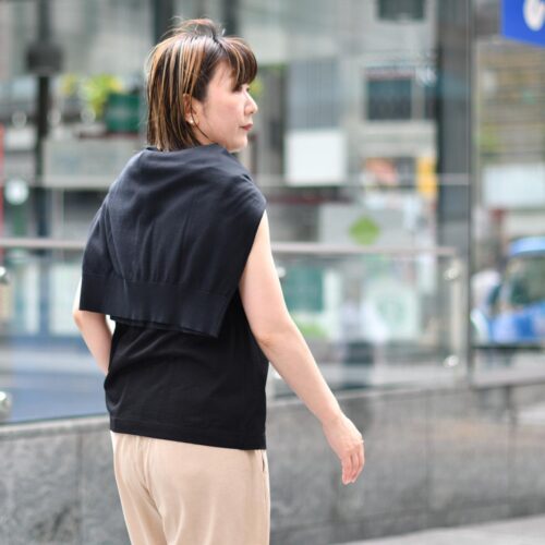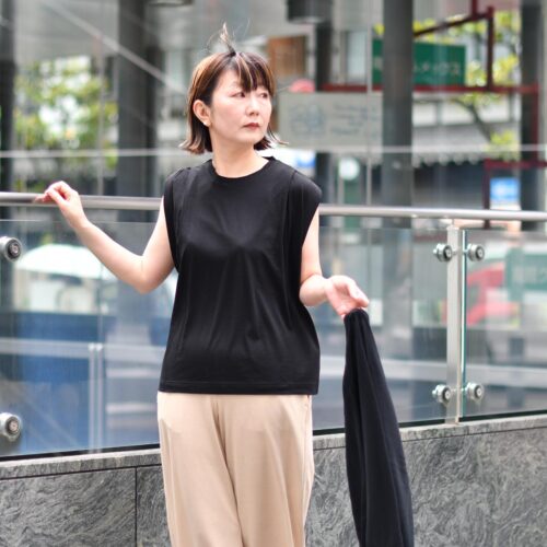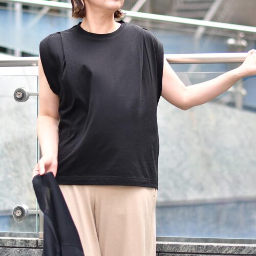 three dots【スリードッツ】コットンカシミヤノースリーブカットソー CC0001Y 019 BLACK コットン カシミヤ ブラック