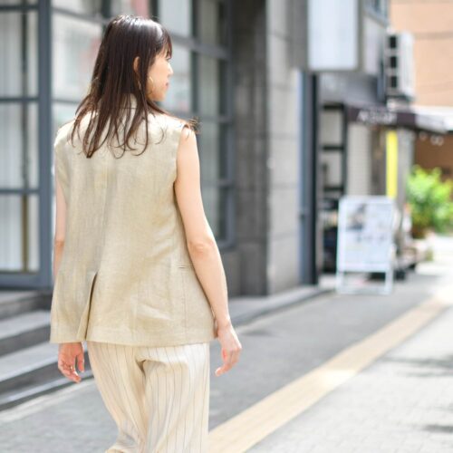 SCAGLIONEのノースリーブニットを重ねたレイヤードスタイル!