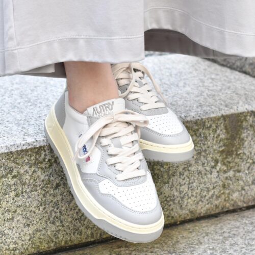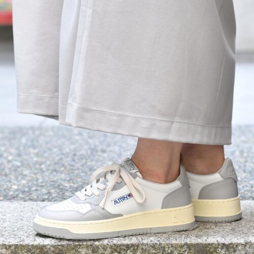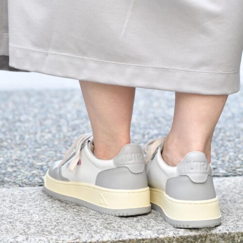 クラシカルなレザースニーカーで、グレー×ホワイトとのカラーコンビネーションは