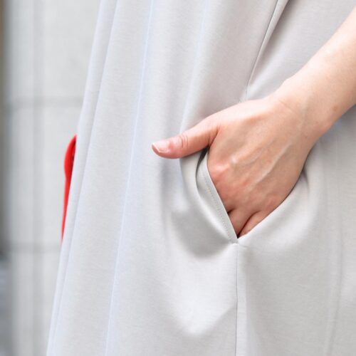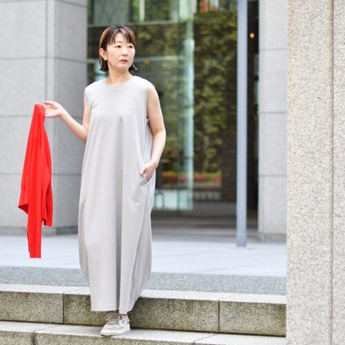 一枚着でスタイルが完成するthree dotsのTシャツ生地のワンピース。