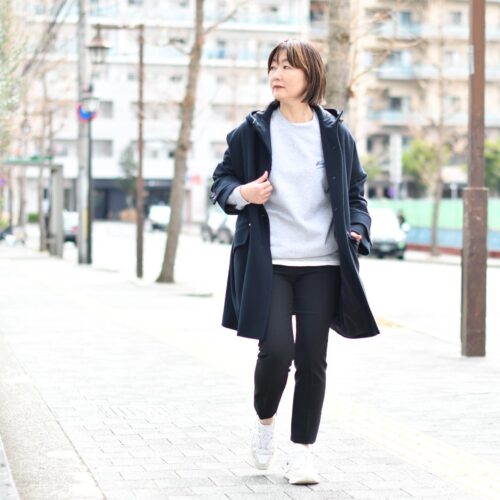 大人のスウェットスタイル。