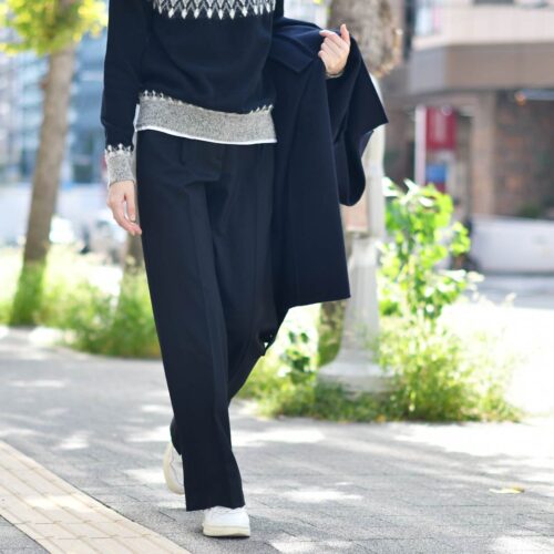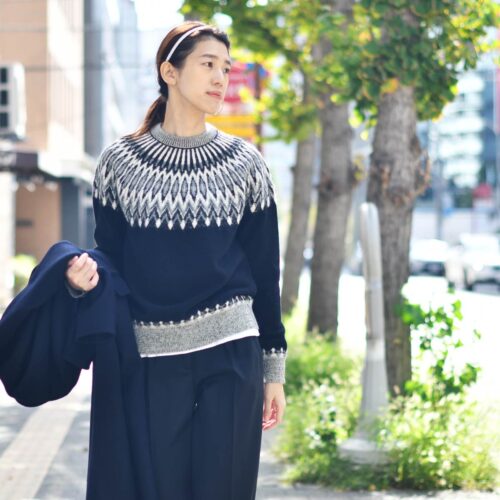 大人のノルディック柄のニットをモノトーンでスタイリング致しました。