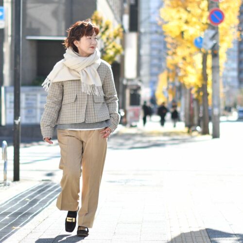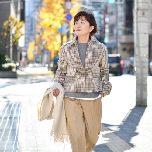 HERNOのチェックブルゾンを主役にベージュ・グレーなど