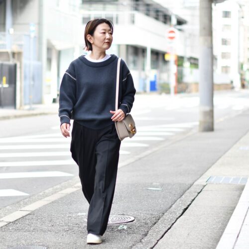 モノトーンでも存在感のあるカシミヤニットのおかげで