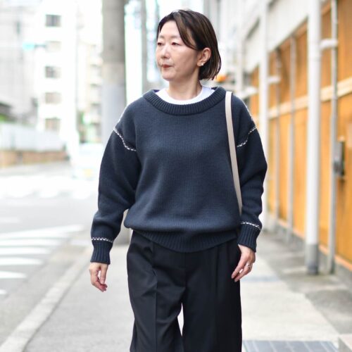贅沢にもローゲージのリラックスシルエット、