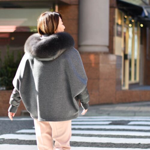 ケープ型のコートとダウンジャケットのコンビアウターは