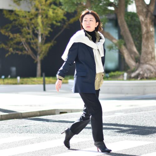 きっちりとしながらも、抜け感のあるスタイリングに。