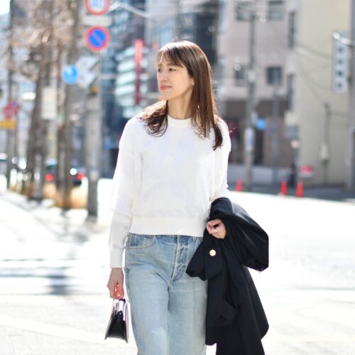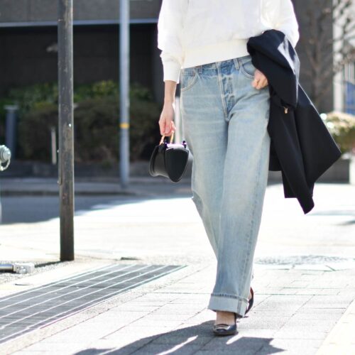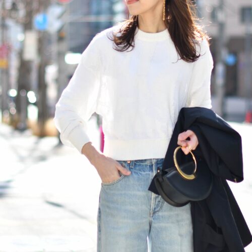 本日はデニム×ニットで綺麗めカジュアルにスタイリング。