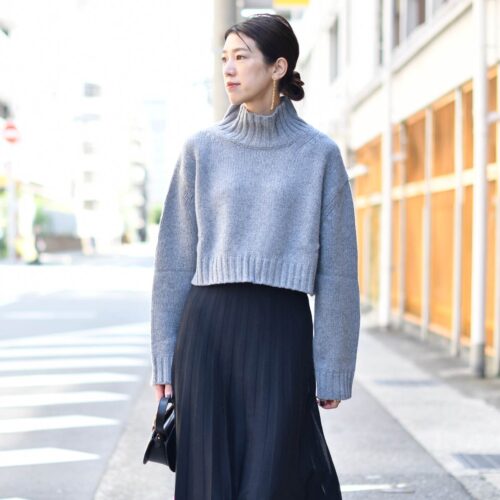 ニット素材の揺れ感のある風合いと透け感あるお素材で、