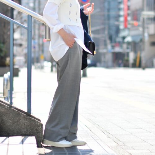 またオーバーサイズシャツを、インせずにワイドパンツと合わせると