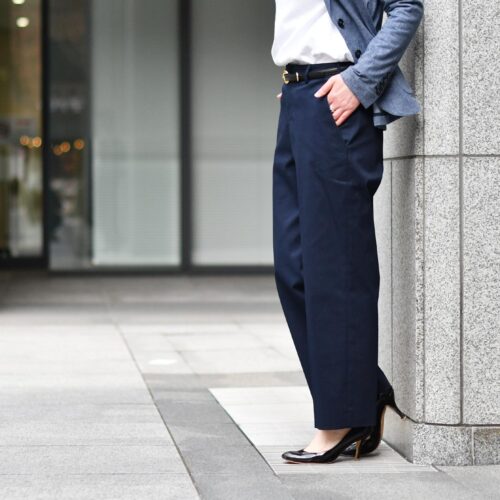 足元はクロップド丈でデザインされ、くるぶしが少しのぞき抜け感もあり。