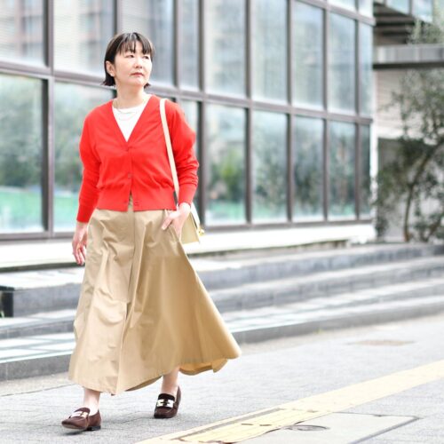 ボリュームのあるボトムとの相性がとても良く、スカートスタイルだけでなく