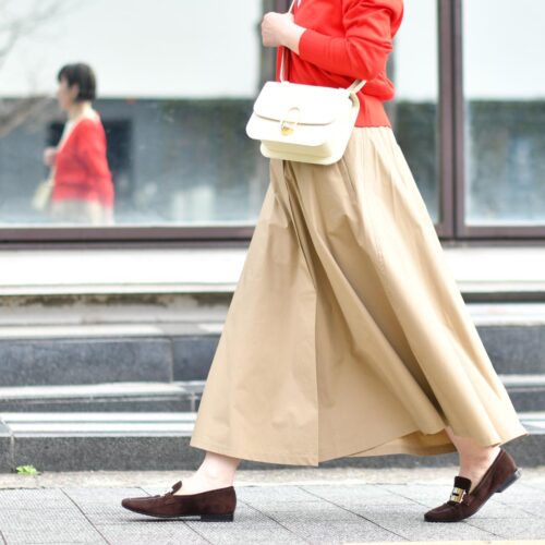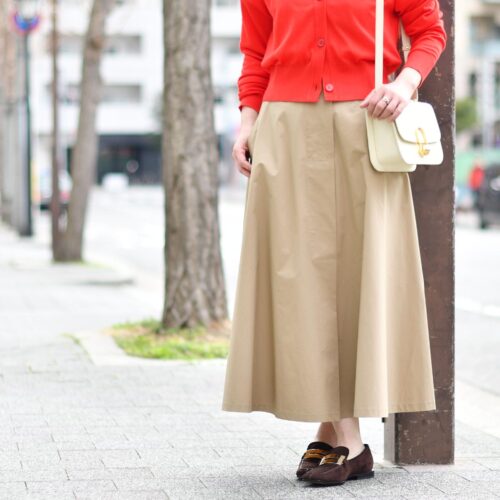 マキシ丈ほど長すぎませんので、上品なスタイルをお楽しみいただけます。