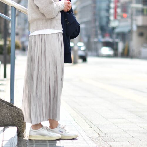 本日は白スニーカー合わせでカジュアルスタイルに。