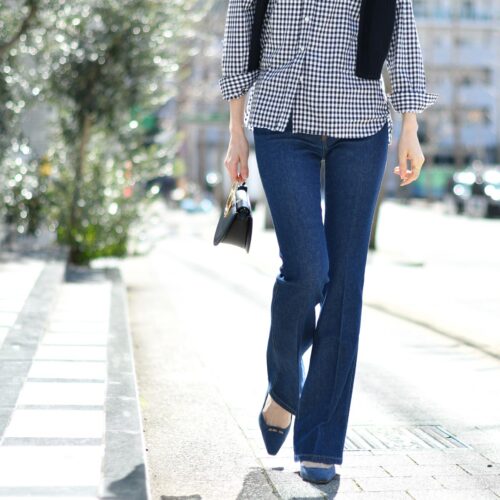 フレアーのデニムに合わせて