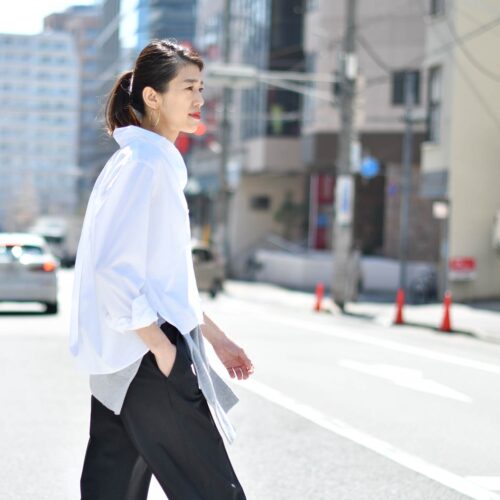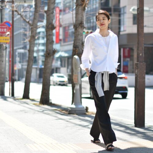 春も白シャツスタイル。