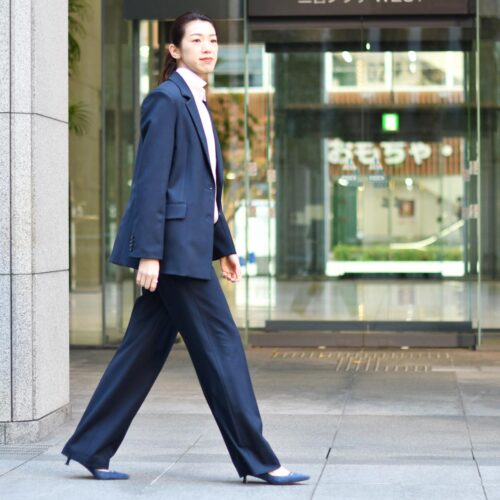 足元は同系色のセミスクエアートゥがお気に入りのPELLICOのパンプス。