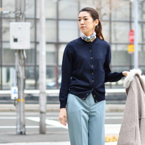 12ゲージのハイゲージで編み上げたニットは、上品な表面感と着心地の良さが際立ちます。
