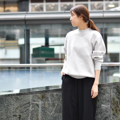 トップスはスウェットの様なデザインをしたニットをセレクト!