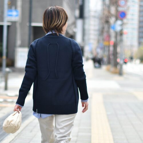 ニットジャケット感覚でお使いいただけるYURI PARKのローゲージカーディガンESTER。