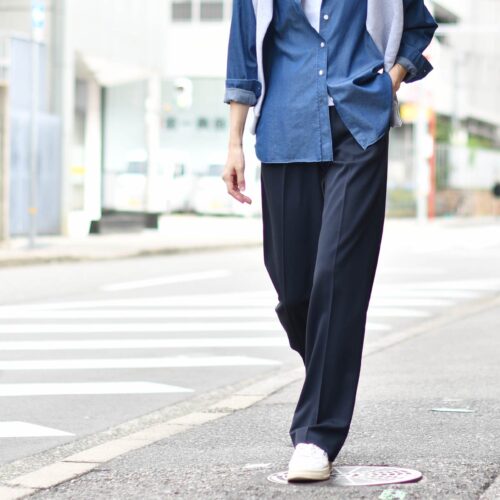 パンツはウール見えするCellarDoorのパンツをセレクト。