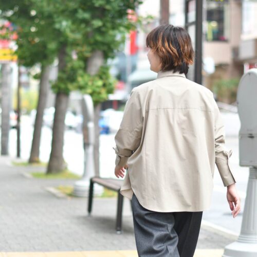 ゆったりとしたボディラインにドロップショルダーデザインの