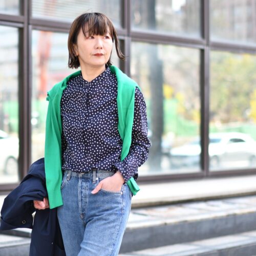 清楚で涼やかなドットブラウス。