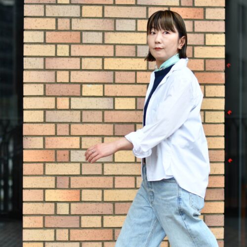 クロップドシャツとバギーデニムででアップデート。