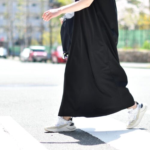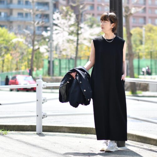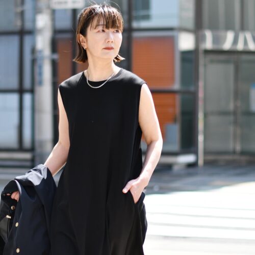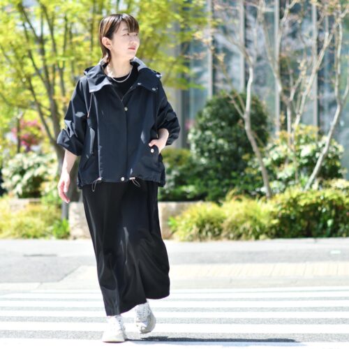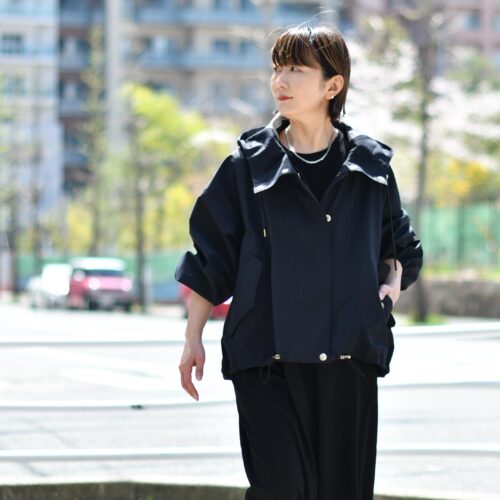 ブラックのワントーンでも重たい印象にならずにお召しいただけます。