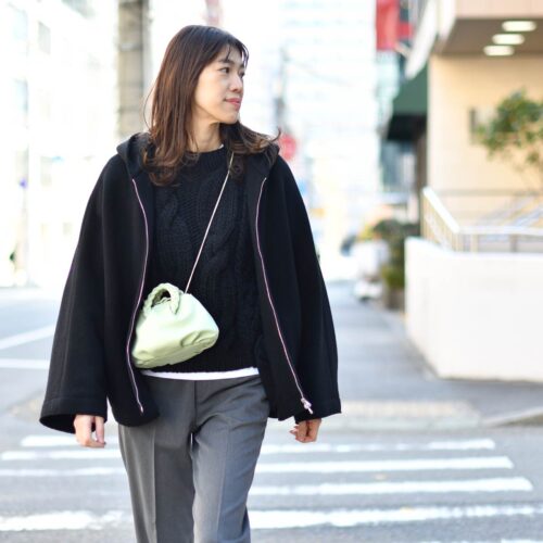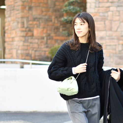インナーにMIRSTORESのボリューム感あるニットを合わせても