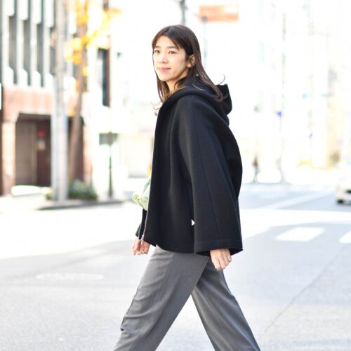 ゆったりとしたオーバーサイズのフォルムが可愛いフーデットタイプ。