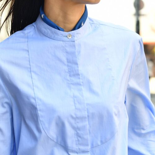 ネック回りにはブルーのスカーフをアクセントに合わせて頂くのも