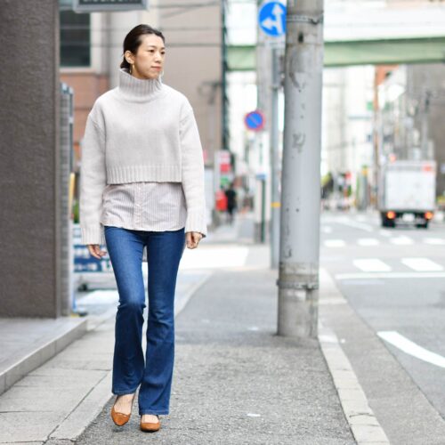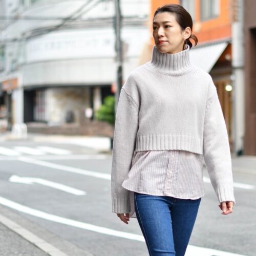 ショート丈のニットとの重ねたスタイルもとてもお勧めで、