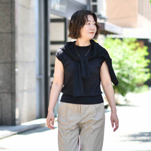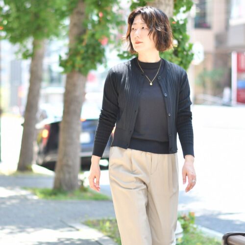 黒のアンサンブルは着回し力も抜群です。