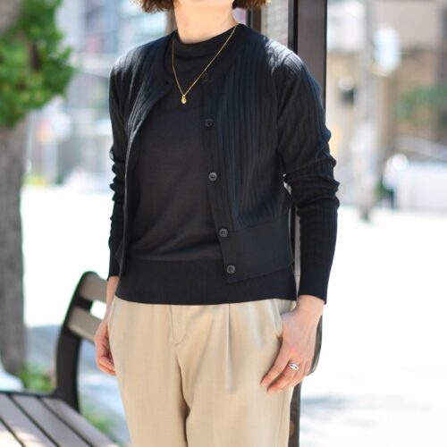 表面感が異なるリブ仕様のコンパクトカーディガンのセットは