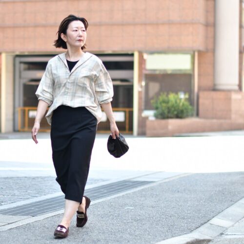 タイトスカートとのコーディネートで綺麗めカジュアルなスタイルに。