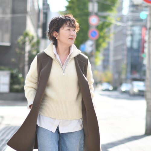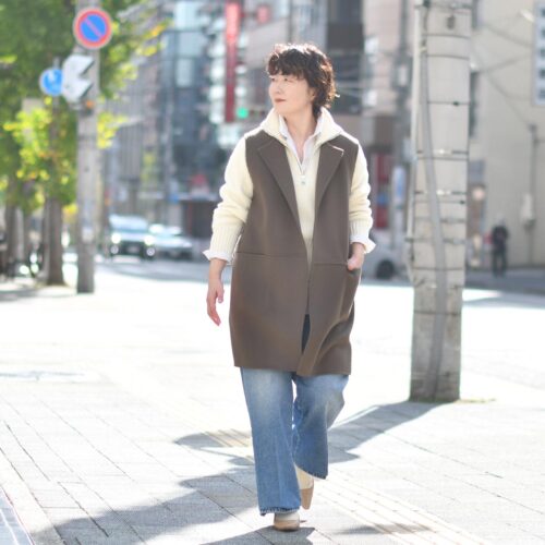 ジレを羽織ることにより、上品で落ち着いた