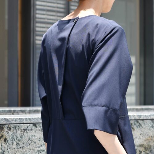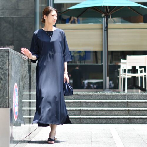 ミニマムなデザインのネイビーワンピース。
