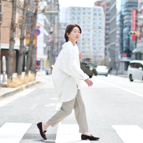 オーバーサイズのシャツスタイルのご紹介でございます。