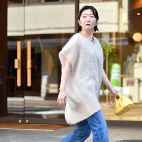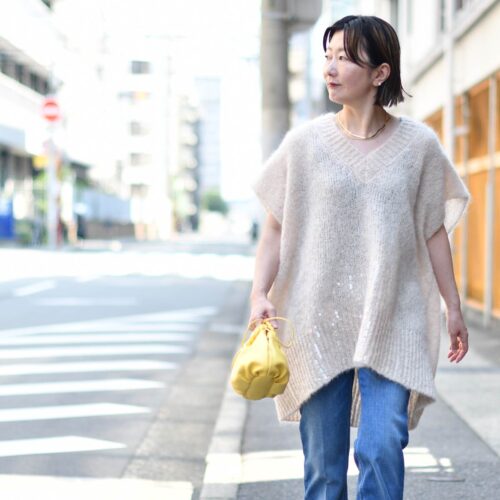 本日ご紹介のコーディネートもニットが主役です。