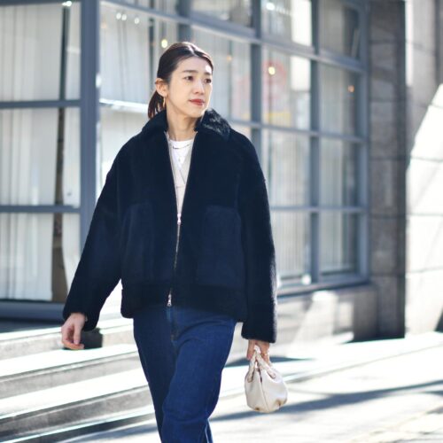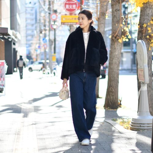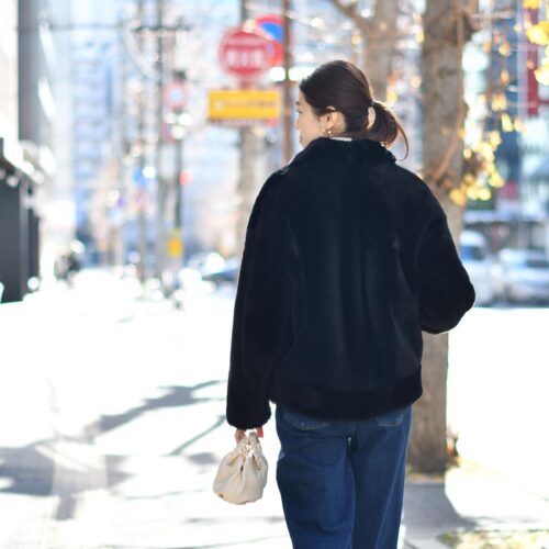 ブラックのショートファーが主役。軽やかに纏う、冬のこなれモノトーン。