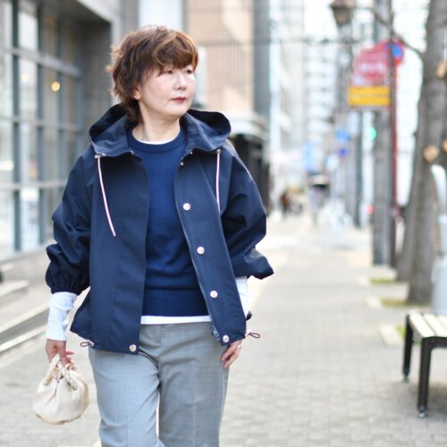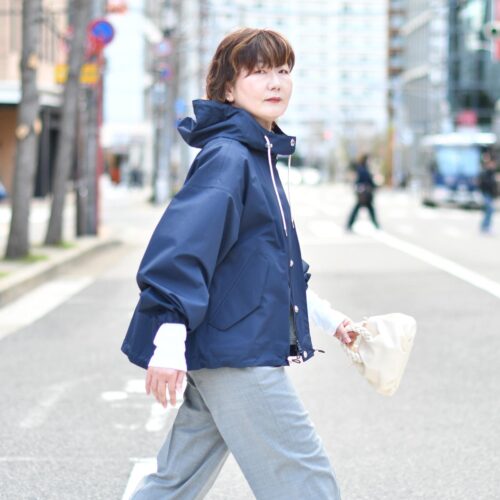 春先にネイビーアウターだと、重たく感じるかも。。