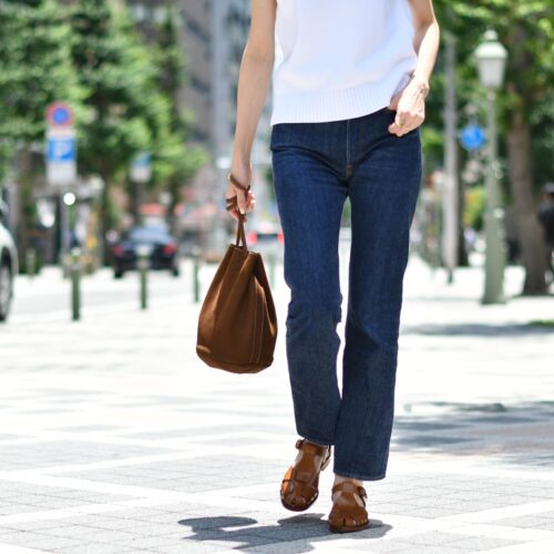 ヌバックのブラウンは夏のリネン素材のお洋服にもマッチしますよね。