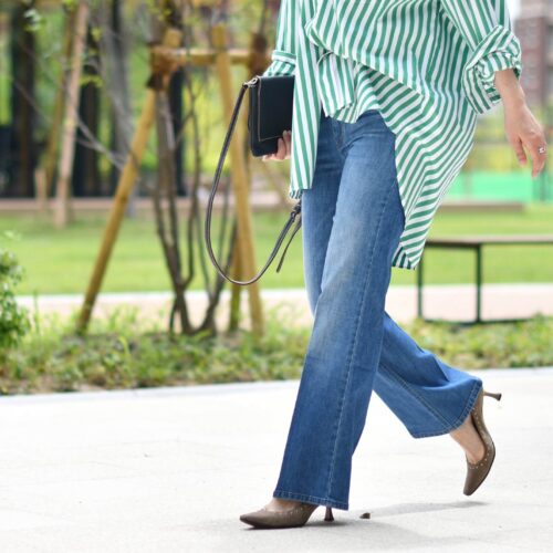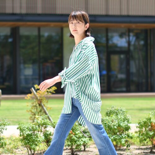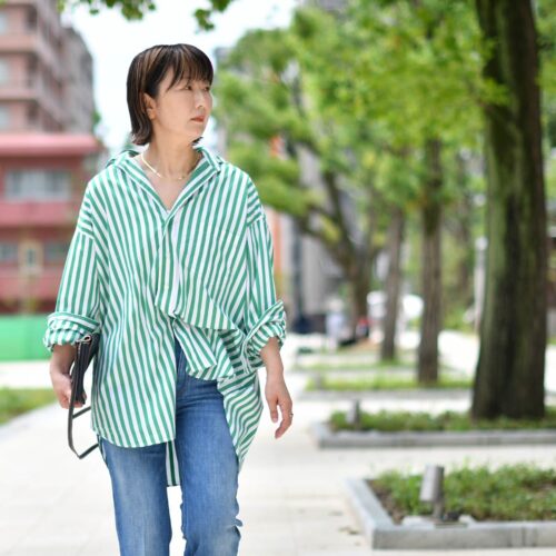 Frank&Eileen【フランク&アイリーン】ストライプシャツ SHIRLEY WGRS 3910700072 063 GREEN コットン グリーン