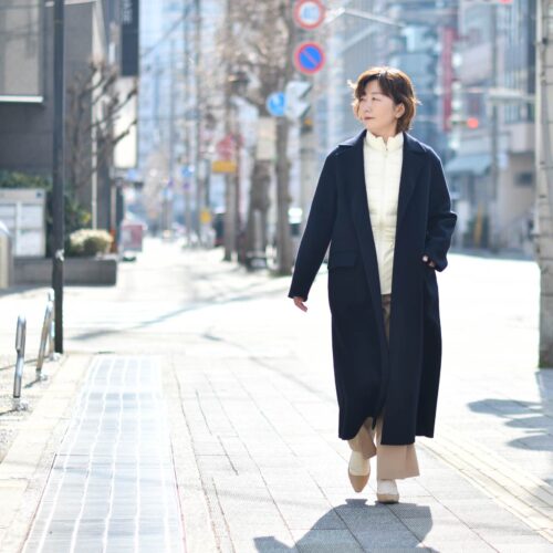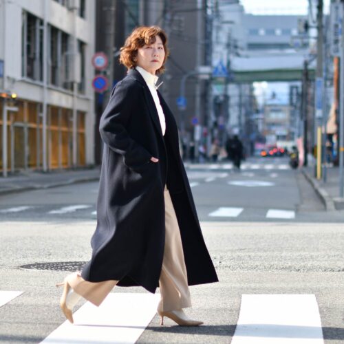 上品なダブルフェイスのロングコートのインナーに