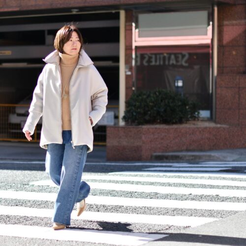 一見ダウンコートには見えない品のある佇まいが素敵です。